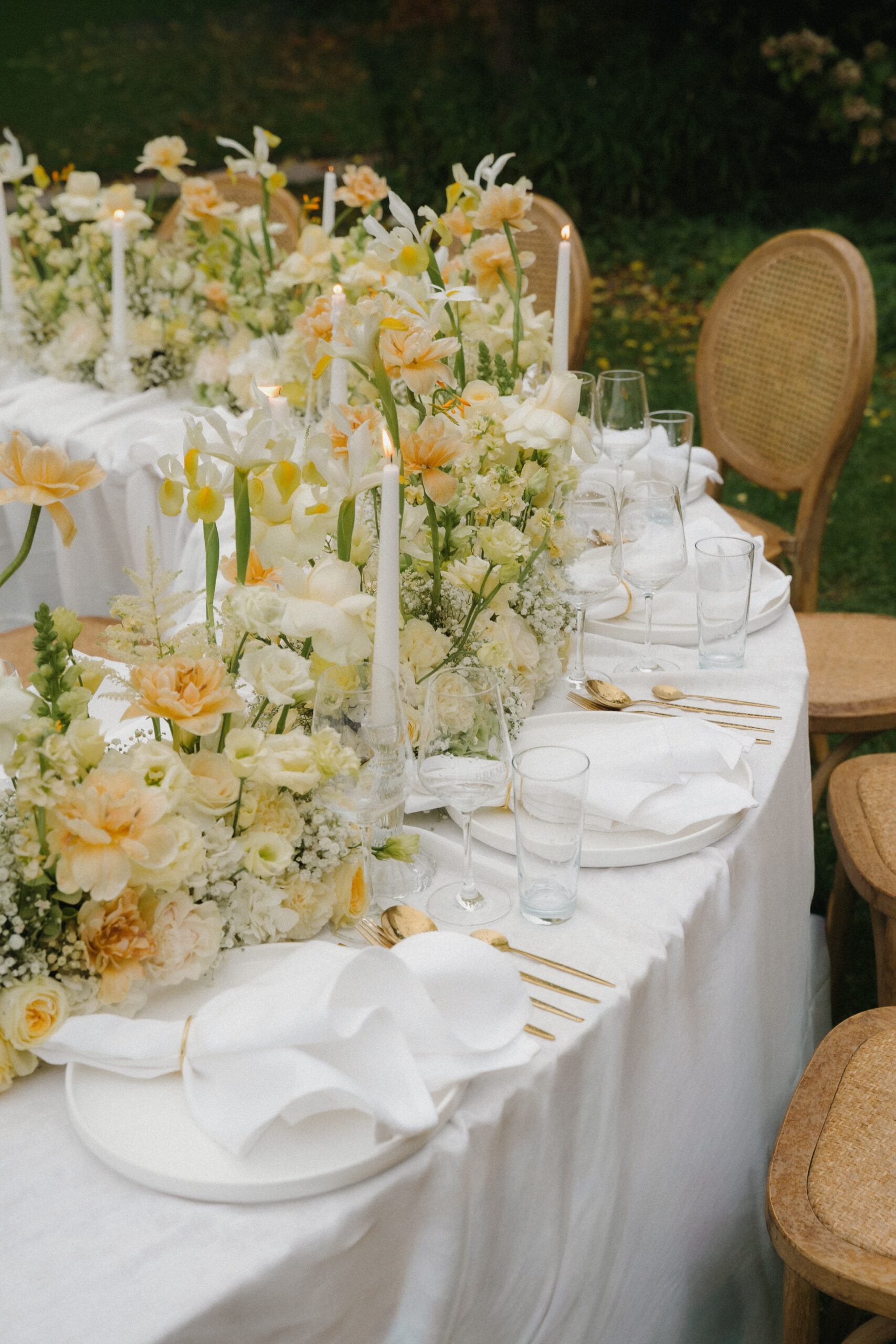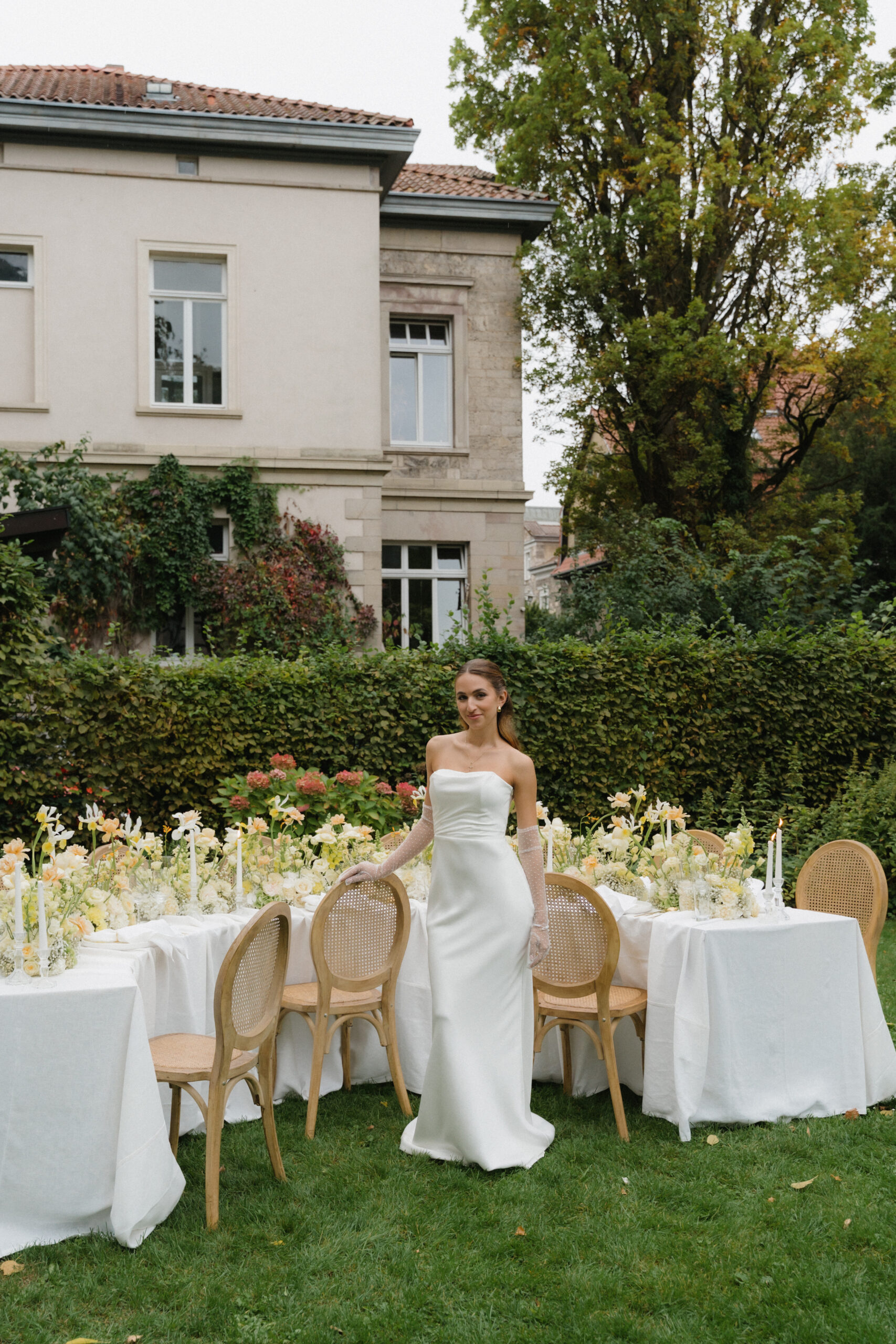 Ein echtes Highlight war für mich der festliche Tisch: nicht gerade, nicht rund, sondern in Form eines Halbkreises, an dem zwölf Gäste Platz nehmen konnten. Diese Form schafft eine einzigartige Nähe zwischen allen, ein Gefühl von Zusammengehörigkeit – und doch wirkt sie modern, frisch und so ganz anders, als man es gewohnt ist.